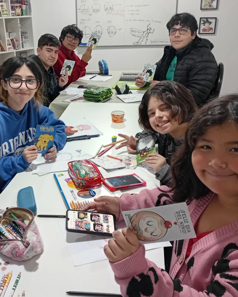 En nuestras clases de dibujo manga para niños, los chicos comparten con pares de sus mismos gustos, superando la soledad de un curso de manga por internet.